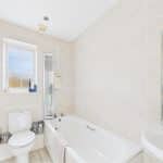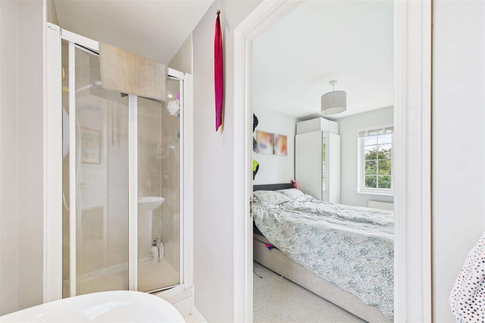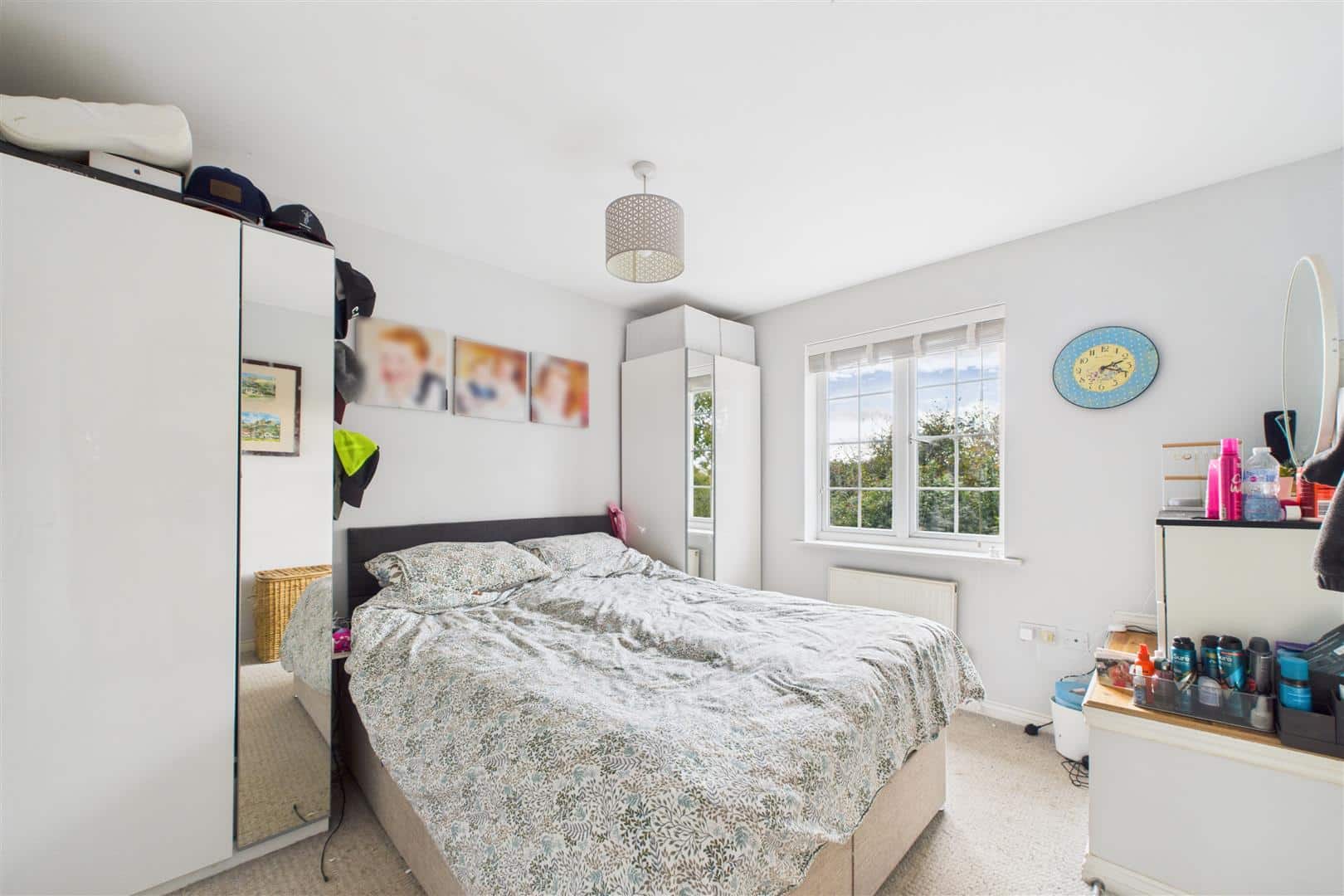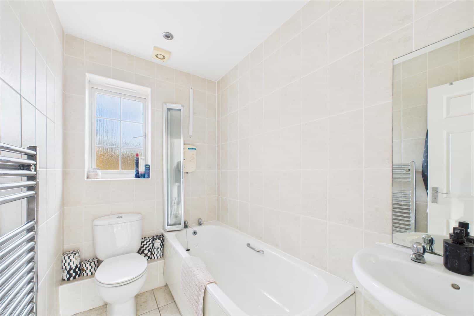 Upstairs, the principal bedroom benefits from an en-suite shower room, while two further bedrooms each include built-in wardrobes. A contemporary family bathroom completes the first floor.