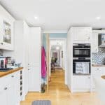 The heart of the home is a generous reception room, flooded with natural light and featuring a charming log burner, creating a warm and inviting focal point. The room opens directly onto the sunny garden, allowing for seamless indoor-outdoor living — perfect for both entertaining and everyday relaxation. The fitted kitchen is well appointed with a range of built-in appliances and offers ample storage and workspace.