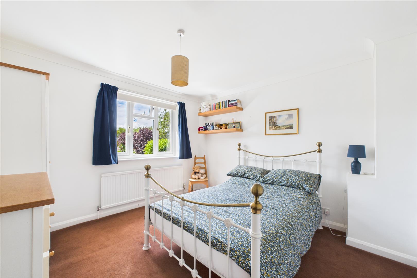 The west-facing rear garden is a sunny haven—mostly laid to lawn with pretty borders, side access and a terrace that catches the afternoon and evening sun. There’s also a wooden shed for storage. The front offers further lawned garden space, ample driveway parking and an attached garage with an up-and-over door.